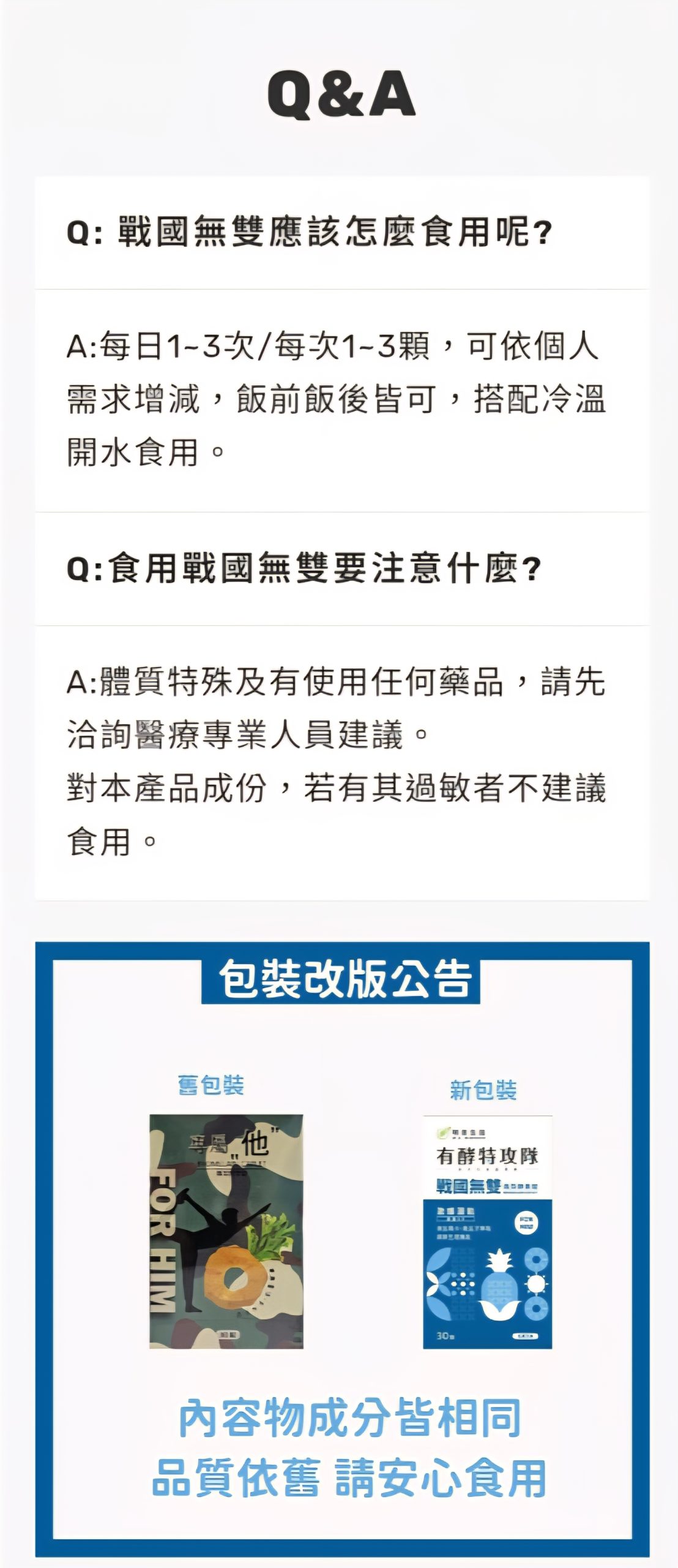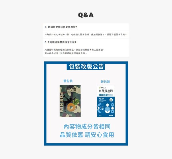 首頁 全品項 有酵特攻隊 戰國無雙 特價 🔍 有酵特攻隊 戰國無雙NT$1,500 原始價格:NT$1,500。NT$1,050目前價格:NT$1,050。 ・明杏專利交聯鳳梨莖酵素,調節生理機能 ・添加精胺酸和瑪卡萃取,滋補強身 ・純自然配方、全素可食 有酵特攻隊 戰國無雙 數量 加入購物車 分類: 全品項 標籤: 保健食品推薦 描述 評價 (0) 商品評價 目前沒有評價。 搶先評價 “有酵特攻隊 戰國無雙”取消回覆Login with your Social ID發佈留言必須填寫的電子郵件地址不會公開。 必填欄位標示為 *您的評分 * 評分… 完美 很好 一般 不錯 很差 名稱 *電子郵件 *您的評價 * 在瀏覽器中儲存顯示名稱、電子郵件地址及個人網站網址,以供下次發佈留言時使用。 送出 相關商品 茶養龍核 烏龍茶 NT$1,315 原始價格:NT$1,315。NT$920目前價格:NT$920。 加入購物車 素食大作戰 鈣片 NT$1,020 原始價格:NT$1,020。NT$700目前價格:NT$700。 加入購物車 素食大作戰 綜合維他命 NT$1,430 原始價格:NT$1,430。NT$1,000目前價格:NT$1,000。 加入購物車