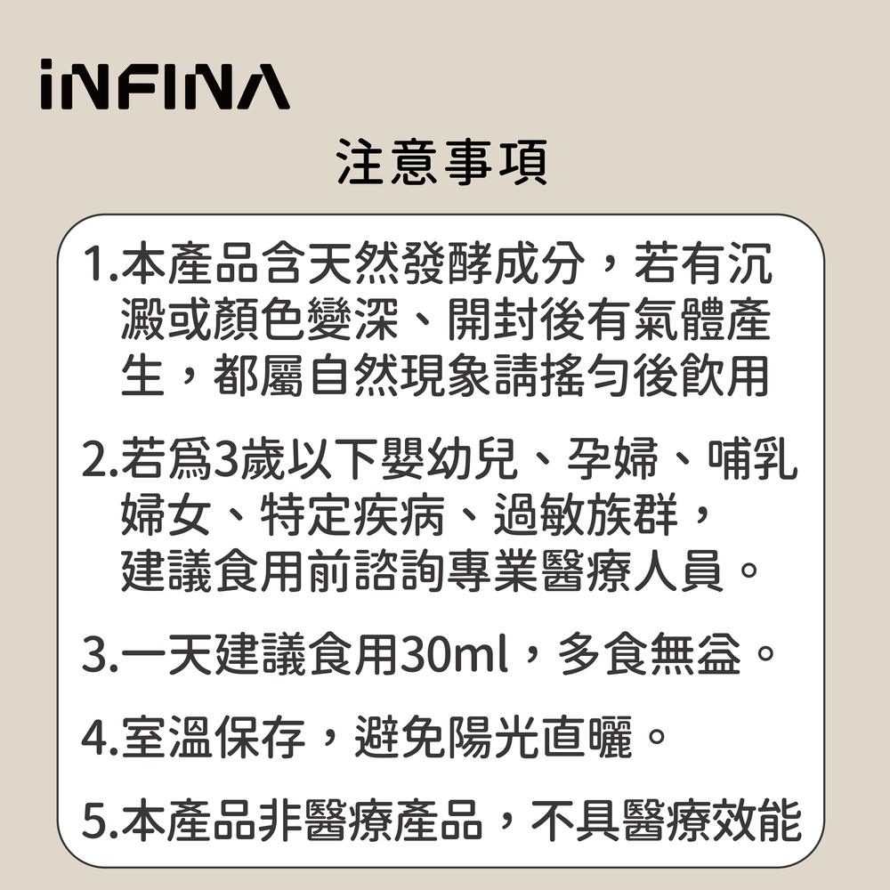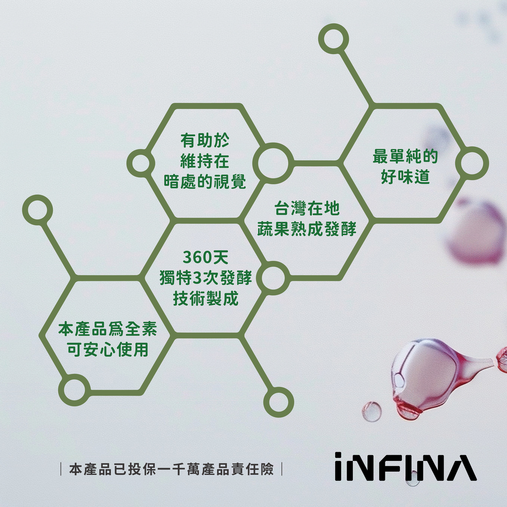 首頁 全品項 INFINA INFINA 山苦瓜發酵液 300ml/瓶 特價 🔍 INFINA 山苦瓜發酵液 300ml/瓶NT$840 原始價格:NT$840。NT$600目前價格:NT$600。 嚴選多種台灣在地蔬果,健康好安心 360天獨特3次發酵技術 有助於維持在暗處的視覺 本產品為全素 INFINA 山苦瓜發酵液 300ml/瓶 數量 加入購物車 分類: INFINA, 全品項 描述 評價 (0) 商品名稱 INFINA 山苦瓜發酵液 成分 山苦瓜、黑糖 商品原產地 台灣 保存期限 未開封三年 保存方式 請放置陰涼處避免太陽直射 有效日期 請詳見產品包裝標示(製造日期會因庫存批次而有所不同) 負責廠商 祐昇生技行銷股份有限公司 製造廠商電話 03 4850369 製造廠商地址 桃園市楊梅區梅高路441巷31號 食品業者登錄字號 H-153496923-00000-6 販售規格 300ml/瓶 注意事項 本產品非醫療產品,不具醫療效能 本產品請放置兒童接觸不到的地方 本產品若有使用不適,應立即停用或盡速就醫 此產品經拆封使用恕不接受退換貨 商品評價 目前沒有評價。 搶先評價 “INFINA 山苦瓜發酵液 300ml/瓶”取消回覆Login with your Social ID發佈留言必須填寫的電子郵件地址不會公開。 必填欄位標示為 *您的評分 * 評分… 完美 很好 一般 不錯 很差 名稱 *電子郵件 *您的評價 * 在瀏覽器中儲存顯示名稱、電子郵件地址及個人網站網址,以供下次發佈留言時使用。 送出 相關商品 【R3 Coffee Roasters|開拓者咖啡烘焙所】掛耳包5包 NT$300 原始價格:NT$300。NT$270目前價格:NT$270。 選擇規格 此產品有多種款式。 可在產品頁面選擇選項 售罄茶養龍核 烏龍茶 NT$1,315 原始價格:NT$1,315。NT$920目前價格:NT$920。 查看內容 【R3 Coffee Roasters|開拓者咖啡烘焙所】掛耳包10包 NT$550 原始價格:NT$550。NT$450目前價格:NT$450。 選擇規格 此產品有多種款式。 可在產品頁面選擇選項